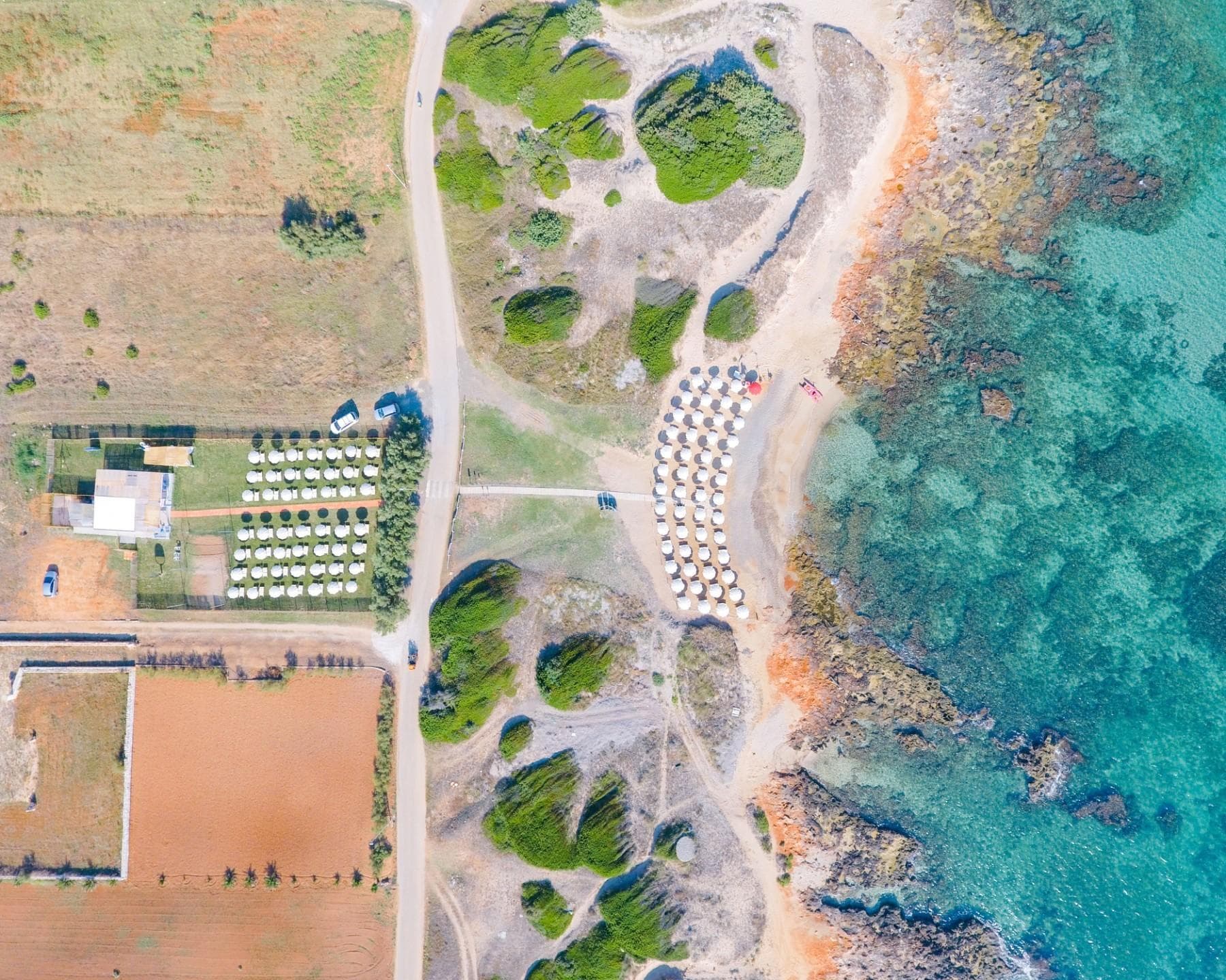 La spiaggia privata è a soli a 400 mt, raggiungibile comodamente a piedi, in bicicletta o con il servizio navetta. Il litorale è misto tra sabbia e rocce piatte, con fondale leggermente digradante e comodo accesso sia per gli adulti che per i bambini. Sarete stupefatti dagli incredibili colori del mare salentino, cangianti dal verde al celeste, premiato per la quinta volta consecutiva con la Bandiera Blu. In spiaggia potrete rilassarvi in un ambiente tra i più incontaminati delle coste salentine, raggiungendo a piedi le meravigliose aree protette della riserva naturale. Il servizio spiaggia è incluso nella card servizi e prevede servizio navetta, ombrellone e due lettini per camera. È inoltre possibile raggiungere le vicine spiagge libere, con servizio navetta ad orari prestabiliti: potremo fornire gratuitamente un ombrellone compact portatile per consentirvi di poter provare emozioni uniche di vivere la vostra giornata a mare in un’oasi protetta, dove rilassarvi lontano dai lidi organizzati e poter scegliere le calette, spiagge o scogliere che più vi affascinano.